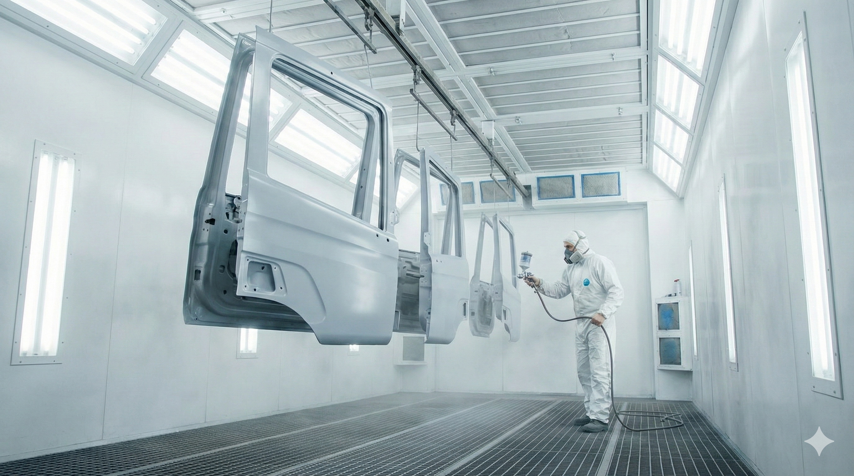 Una cabina de pintura es un recinto completamente cerrado y estanco con una sobre presión por el que circula aire caliente a una velocidad adecuada para poder pintar y secar en el menor tiempo posible la pintura aplicada en un vehículo.